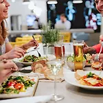 Restoranda her sabah 06:00 ile 10:30 saatleri arasında açık büfe kahvaltı mevcuttur. Restoran 18:00 ile 01:00 arası açıktır. Lobideki bar rahatlatıcı içecekler için idealdir. Misafirler, otelden yalnızca 150 metre uzaklıkta bulunan ve orta Avrupa yemeklerini sunan El Puerto adlı mekanın tadını çıkarabilirler.